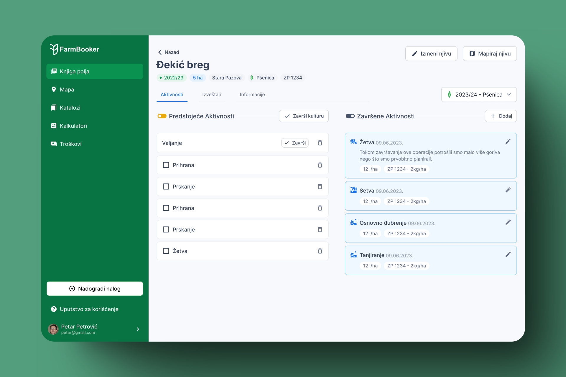 Farmbooker empowers farmers to manage all aspects of agriculture - from maintaining advanced digital field records to detailed field mapping and precise cost calculations.