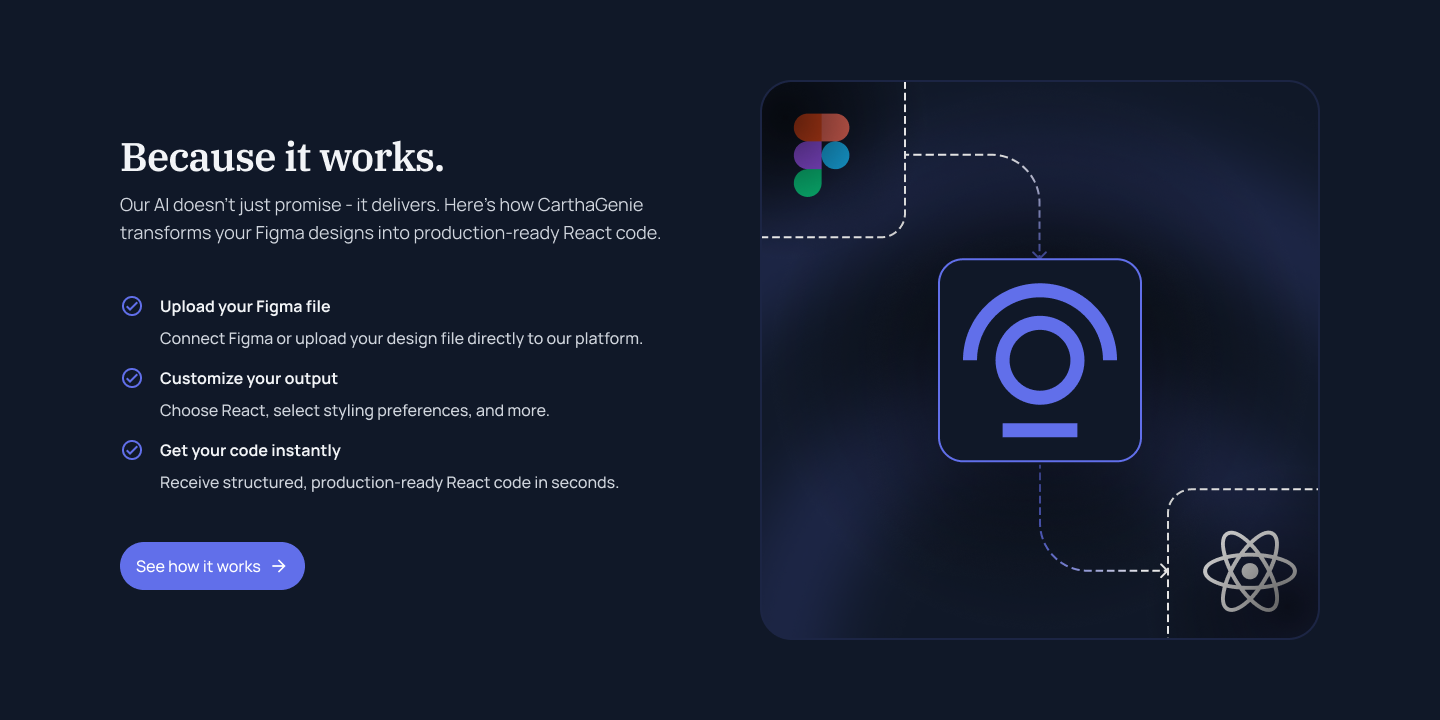 Carthegine AI transforms Figma designs into production-ready React code.